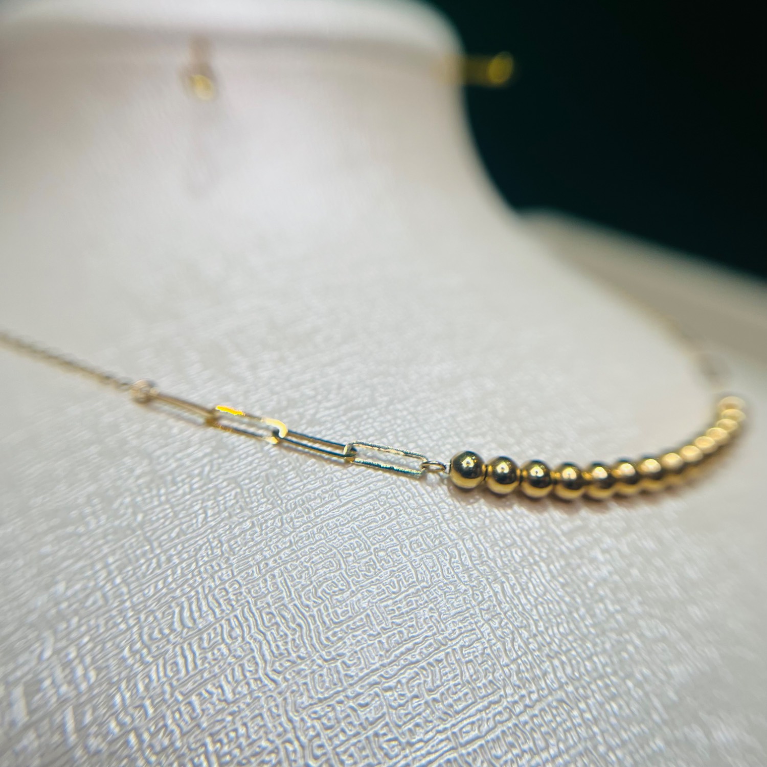 گردنبند مینیمال طرح دو گوی و زنجیر حلقهای وزن 0.830 گرم اجرت ساخت ۱۵ درصد کد GD01 000037