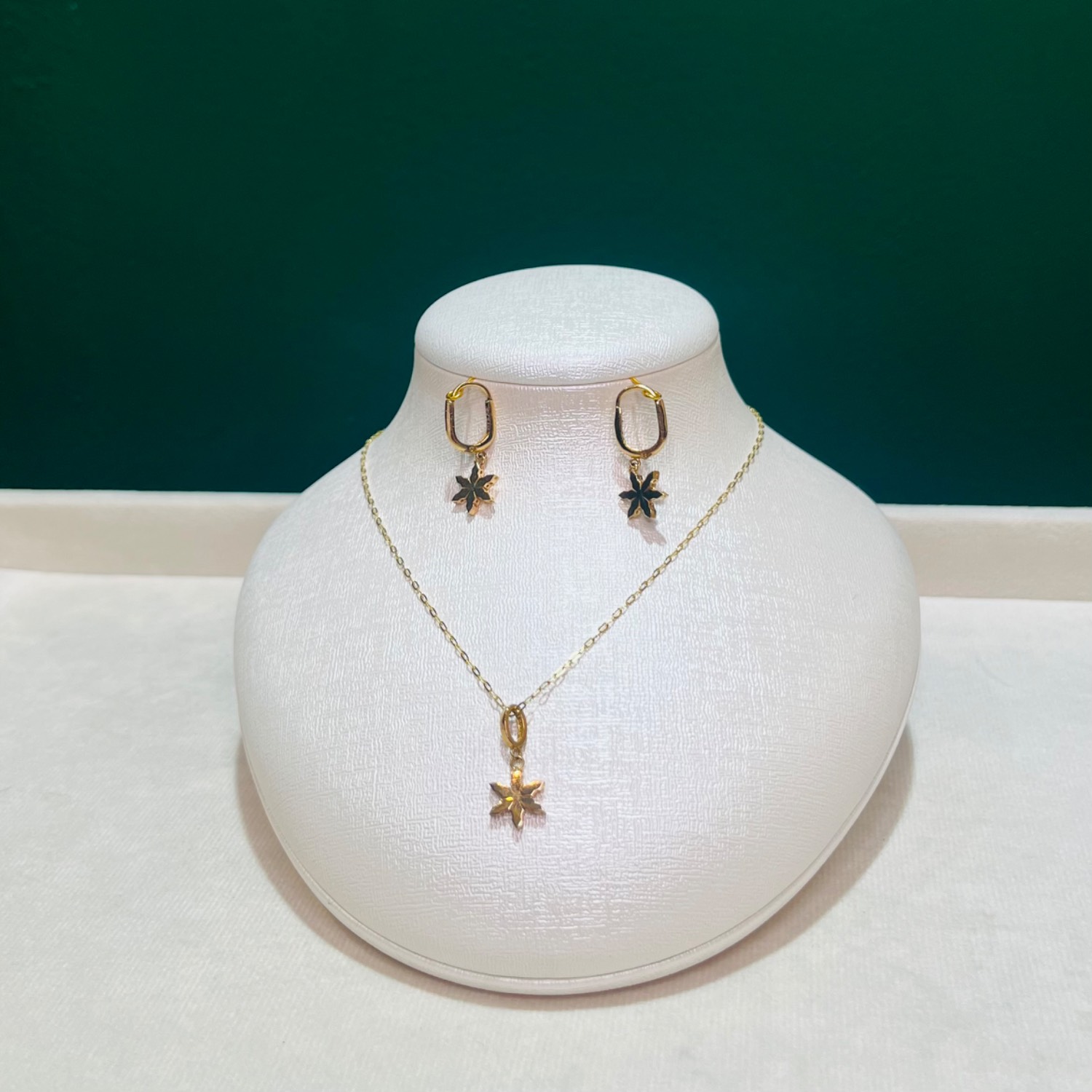 نیم ست برگ پاییزی با آویز گردنی و گوشواره وزن۳.۴00 گرم اجرت ساخت ۱۱ درصد کد GD01 000021